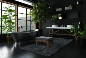 Pour les salles de bain lumineuses et spacieuses, le noir peut apporter une touche d’élégance et de raffinement. Utilisé avec parcimonie, le noir peut créer des contrastes saisissants et mettre en valeur certains éléments architecturaux ou de design. Cependant, il est essentiel d’équilibrer le noir avec des nuances plus claires pour éviter d’alourdir visuellement l’espace.